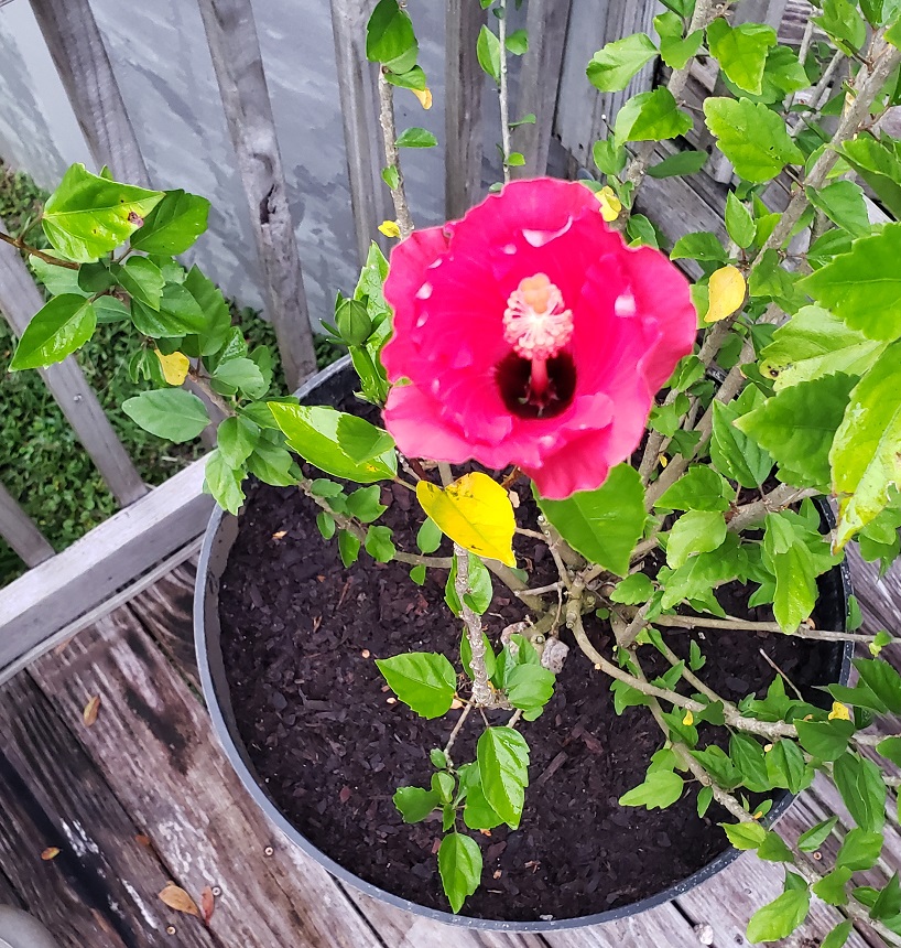 I have always loved the saying ‘bloom where you are planted’. This phrase reminds me to make the best of wherever you are, to bring brightness in the situation. My hibiscus was full of leaves and multiple blooms last year. Unfortunately, during the winter the cold took its toll and I was not sure it would make it. It is not as full as it once was, and blooms now occur one at a time. It is the essence of the phrase blooming where it is planted bringing beauty to the surroundings.